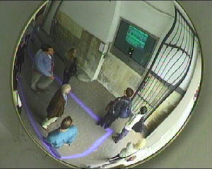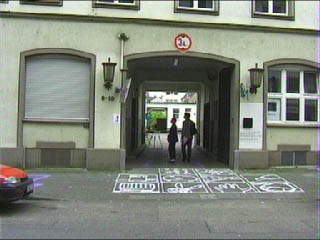 kleine Aussparung in der Leinwand nimmt sie die draussen auf dem Durchgang stehenden Zuschauer auf.